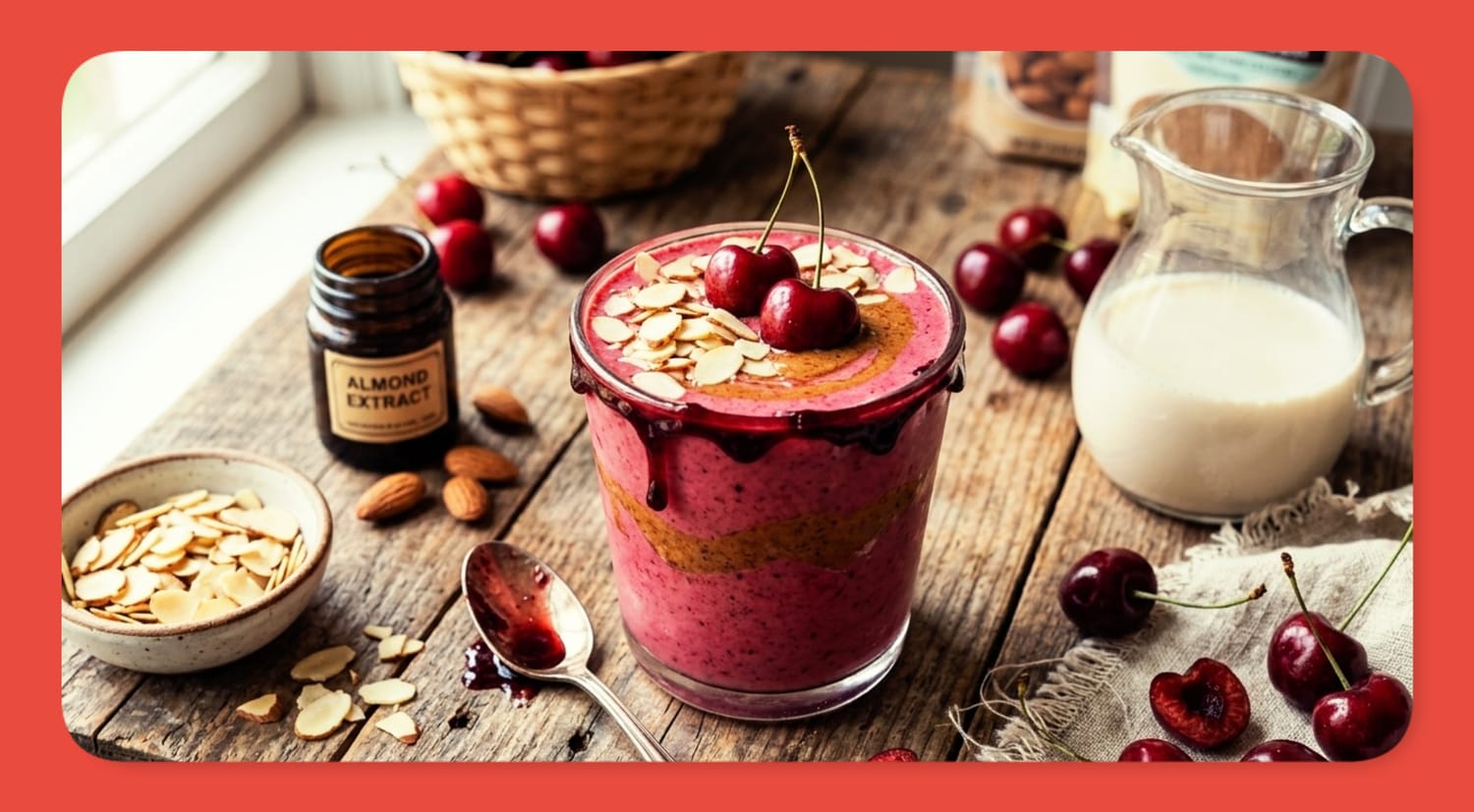 Taste the smoothie before pouring. Cherry sweetness varies between brands and seasons, so adjust the maple syrup up or down by a teaspoon if needed. The almond extract should be present but subtle, a warm background note, not the star. If you can distinctly taste "almond extract" as a separate flavor, you've added too much. For future batches, reduce to 1/8 teaspoon and work up.