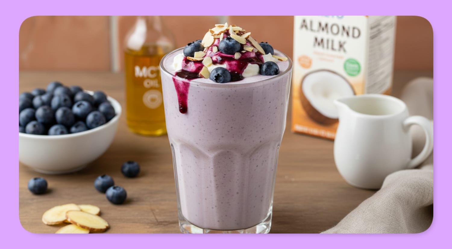 Make-Ahead Smoothie Packs: Pre-portion frozen blueberries and any dry add-ins (protein powder, chia seeds) into small freezer bags. Label with "add 3/4 cup almond milk, 1/4 cup heavy cream, 1 tbsp MCT oil." Grab, blend, and go in under 2 minutes on busy mornings.