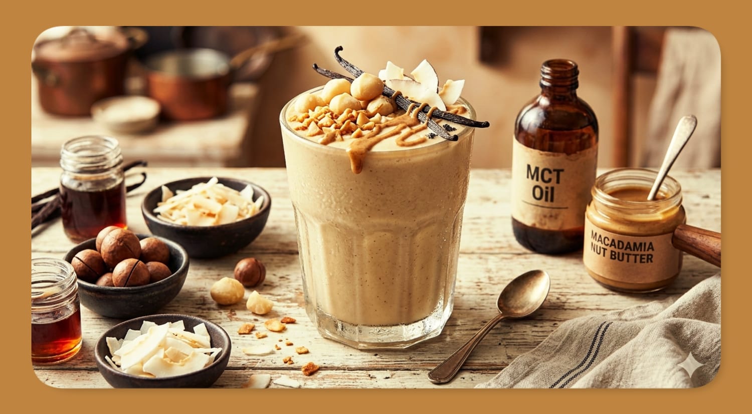 When blended with full-fat coconut milk, the macadamias create an impossibly creamy, almost custard-like texture that rivals any dairy-based milkshake. Adding MCT oil amplifies the ketogenic benefits while contributing to the smoothie's silky mouthfeel. Pure vanilla extract ties everything together with warm, aromatic notes that make the smoothie taste like liquid dessert.