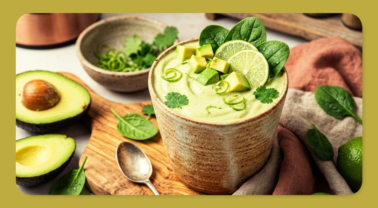 Banana is the traditional smoothie thickener, but it brings approximately 14 grams of sugar per fruit. For those watching their sugar or carbohydrate intake, banana can derail their goals. Avocado provides the same creamy, thick texture with less than 1 gram of sugar per half fruit while adding heart-healthy monounsaturated fats that support satiety and stable energy. The trade-off is a milder, less sweet flavor, which this recipe balances with lime and optional sweetener.