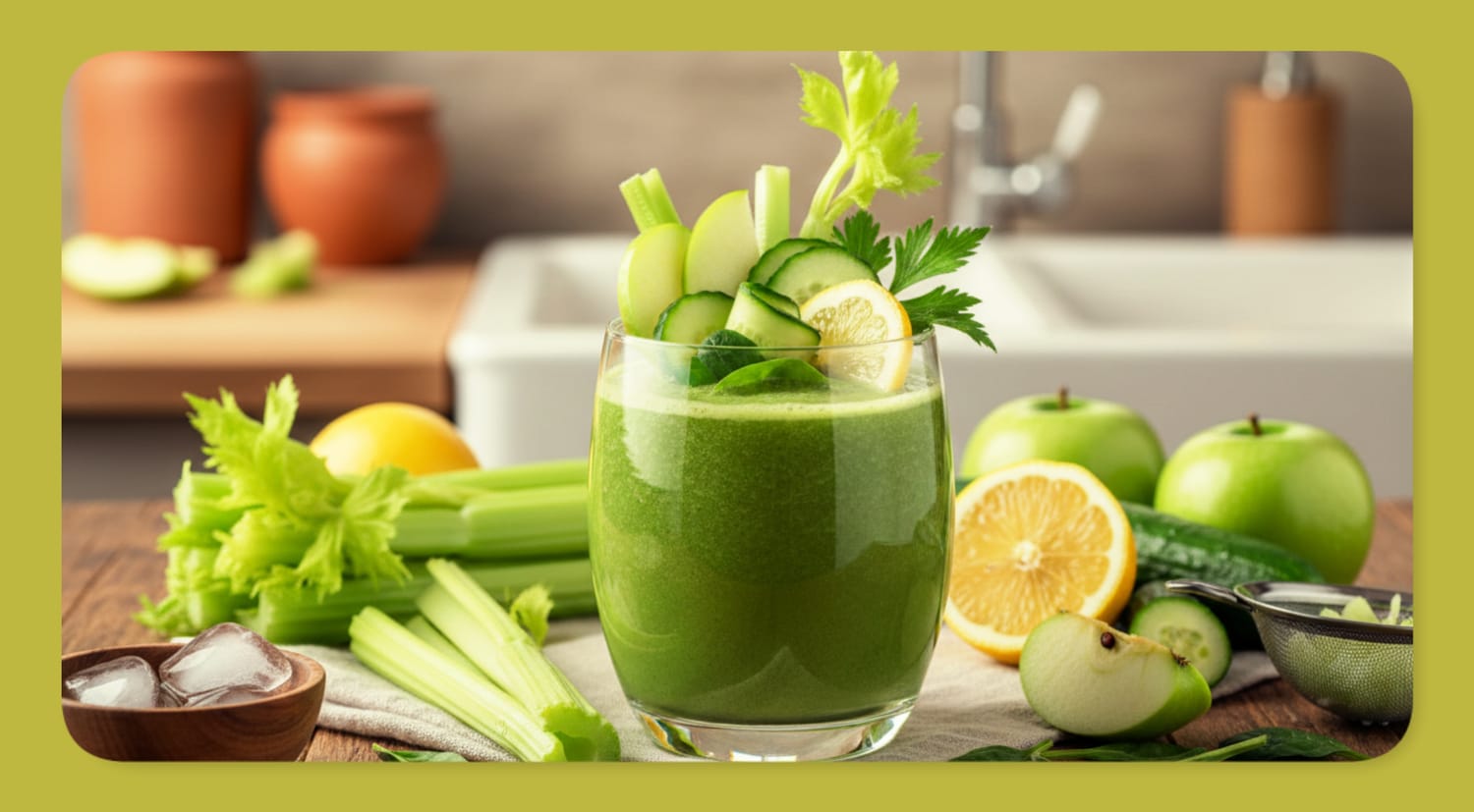 Celery is present in the flavor, but it's balanced by the tartness of the green apple and the brightness of lemon. The overall taste is clean and refreshing rather than strongly celery-forward. If you're sensitive to celery flavor, start with 1 stalk instead of 2 and increase as you adjust.