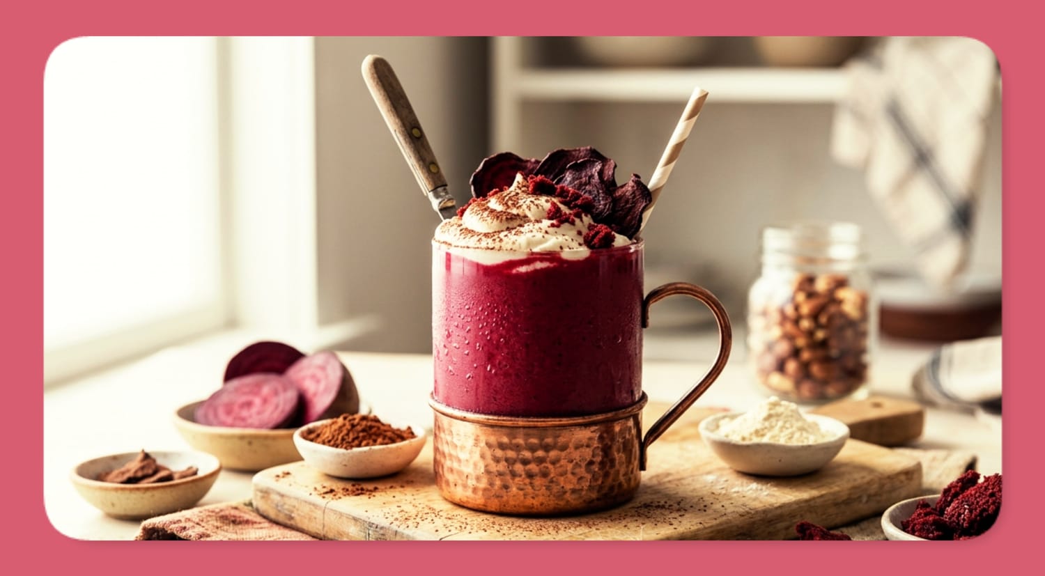 The first sip is almost disorienting. Rich, cocoa-kissed sweetness rolls across your tongue, followed by the faintest earthy whisper you can't quite place. It's creamy, cold, and impossibly smooth, like drinking a slice of red velvet cake through a straw. Except this glass is hiding a secret: beets. Real, whole beets, blending seamlessly into that gorgeous crimson swirl, delivering vitamins and antioxidants without a trace of "vegetable taste." And with over 30 grams of protein packed into every serving, this smoothie doesn't just look indulgent. It fuels your entire morning.
