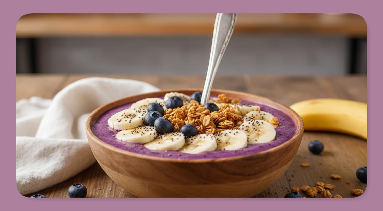 This vibrant blueberry smoothie bowl proves that healthy breakfast doesn't mean sacrificing flavor, convenience, or that Instagram-worthy presentation. You're getting genuine nutrition, 18g of protein, over 4,000mg of antioxidants, substantial fiber, in a format that tastes like dessert and takes 5 minutes to make.