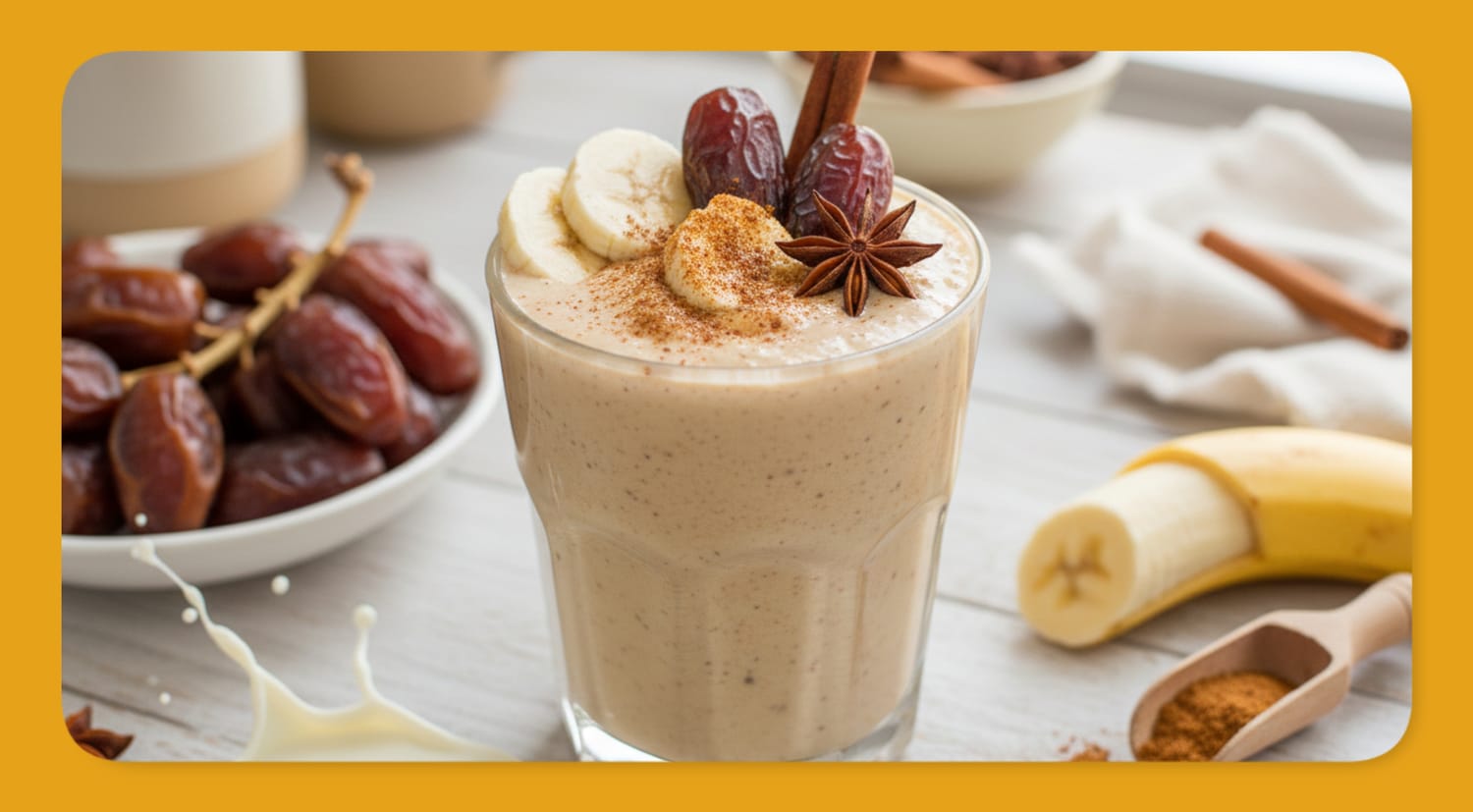 Texture Checkpoint: Stop and check consistency. The smoothie should be thick and creamy, similar to a melted milkshake. No date pieces or banana chunks should be visible.